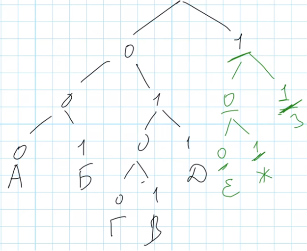 Нарисуем дерево известных кодов в соответствии с условием задачи: